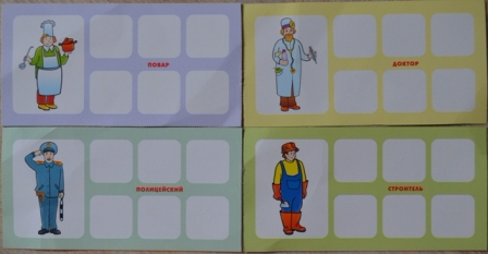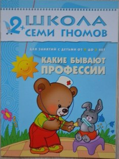 На каждом развороте представлена очень подробная информация об одной из профессий: повар, полицейский, врач, строитель, пожарный, парикмахер. В центральной вкладке как всегда находится интересный дидактический материал, в данном случае - лото. Имеет смысл купить сразу одноименное пособие тоже Школы Семи Гномов только для возраста 3-4 года (в , , , , , ). Суть здесь АБСОЛЮТНО такая же, только добавляются еще 6 профессий: художник, автослесарь, портной, рыбаки, музыканты и учитель.