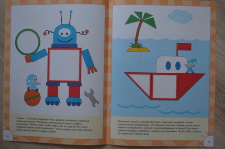 Всё что связано с "вырезать" и "приклеить" - это наше! Задания разнообразны по своему содержанию: это и заселить в домик жильцов, и сделать домики-ракушки для улиток. Причем есть подробное описание для родителей по каждому конкретному заданию, а их всего 8. Данная книга способствует формированию сразу нескольких навыков у ребенка: усидчивость, аккуратность, а также побуждает к дальнейшему творчеству. Даже если ребенок не очень хорошо владеет ножницами, ему без труда поддадутся все задания