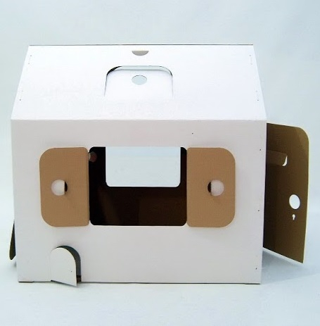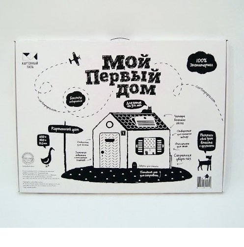 Домик сделан из экологически чистого, трехслойного гофрокартона, толщиной 3 мм., состоит всего из трех деталей и собирается за 10 мин., с помощью пластиковых стяжек (они в комплекте), через заранее подготовленные отверстия. Габариты домика позволяют уместиться в нем родителю одновременно с ребенком, а так же проносить его через большинство межкомнатных дверей.