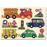 Когда ребенок правильно вкладывает рамку-вкладыш в соответствующую выемку, то будет слышать звук той или другой машики (скорая помощь, самолет, поезд и т.д. ), изображенной на картинке пазла. Пазл развивает мелкую моторику, самостоятельность, внимание и логику. Размер: 26,5х2,5х18,5см