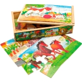 Пазл состоит из 4х12 элементов. Элементы одного пазла отмечены на обороте одним и тем же символом, который поможет отличить его от других пазлов, что смешались. Деревянная коробка с крышкой-задвижкой предназначена для хранения элементов пазлов. Во время игры совершенствуется мелкая моторика, что не только поможет в будущем овладеть письмом, но и хорошо отразится на развитии речи и интеллектуальных способностей малыша. Размер 20х3,5х14см