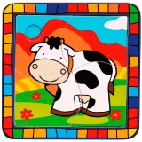 В этой рамке 6 вкладышей в форме петушка, коровы, кота, собачки, свинки и утенка. А также панель с изображением этих же животных. Нажав пальчиком на собачку, малыш услышит ее лай! Остальные животные в этой рамке тоже умеют «говорить».