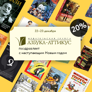В честь наступающих праздников издательская группа «Аттикус» дарит своим покупателям скидку: 22 и 23 декабря на книги издательств «», «», «» и «» действует скидка 20%! Вдвойне приятно, когда предпраздничная скидка распространяется на самые любимые книги - лучшие новинки, бестселлеры, интересный нонфикшн и замечательную детскую литературу.