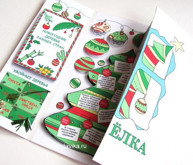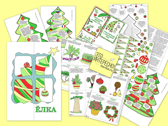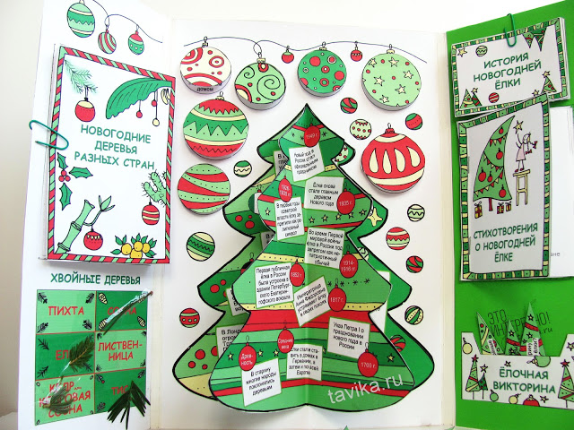 Развивающий материал (полезные развивающие игрушки)Мы с дочкой сделали новый лэпбук. Тема, конечно же, новогодняя:) Дедов морозов мы уже изучали в прошлом году, поэтому в этот раз решили узнать все самое интересное о елке и составить нечто вроде мини-энциклопедии о ней. Например, что наряжают на Новый год в Африке, кто придумал ставить украшенную ель в дом, когда и почему ёлка была под запретом, какие были первые елочные игрушки - ответы на все эти и не только эти вопросы есть в лэпбуке. И, конечно, по традиции, в ходе занятий по лэпбуку надо будет выполнить несколько развивающих заданий из разных областей знания - от литературы до ботаники. Там и стихотворения, и аппликация, и раскраска, и вопросы елочной викторины и составление собственного гербария. Я постаралась сделать в этот раз лэпбук попроще и понаряднее - ведь, все-таки, праздник:) Все подробности и описание заданий И там же можно узнать, как получить шаблоны этого лэпбука для распечатки.