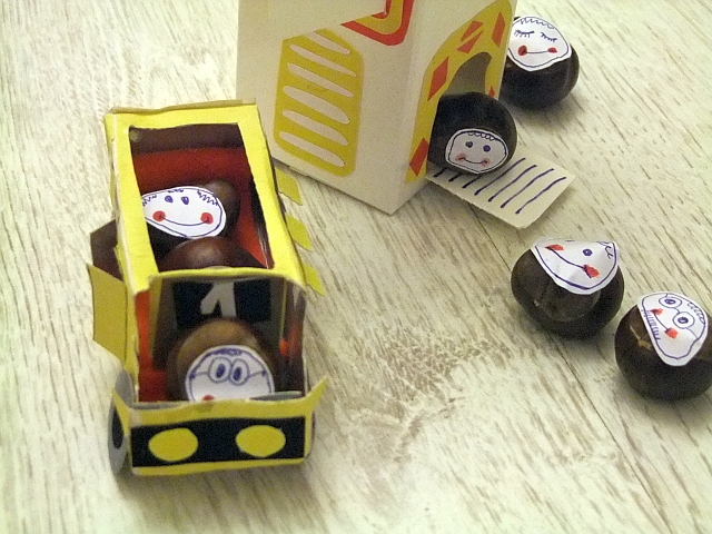 Делали с детьми домик, автобус и человечков из каштанов. А потом весь день играли!