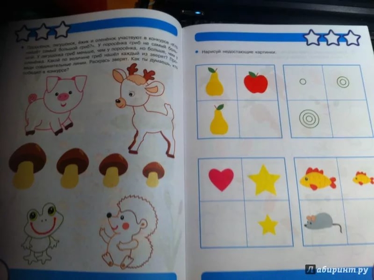 в квадратах надо дорисовать рисунки. круги разрушают логику ,больше меньше.