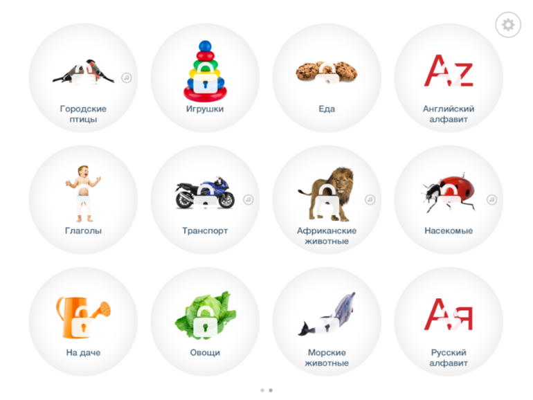 Озвучка. Конечно же, можно читать названия карточек самому, но когда малыш подрастет, то его можно оставить с планшетом на 10 минут - он сможет слушать, как названия произносит диктор. Очень приятный женский голос, ктстати. А еще некоторые карточки издают звуки! Это было наше открытие :) Например, рояль играет мелодию, а кошка мурлыкает. Очень правильное решение, ребенок должен и посмотреть, и послушать. В идеале конечно и потрогать, но не у всех же дома живет гепард ))