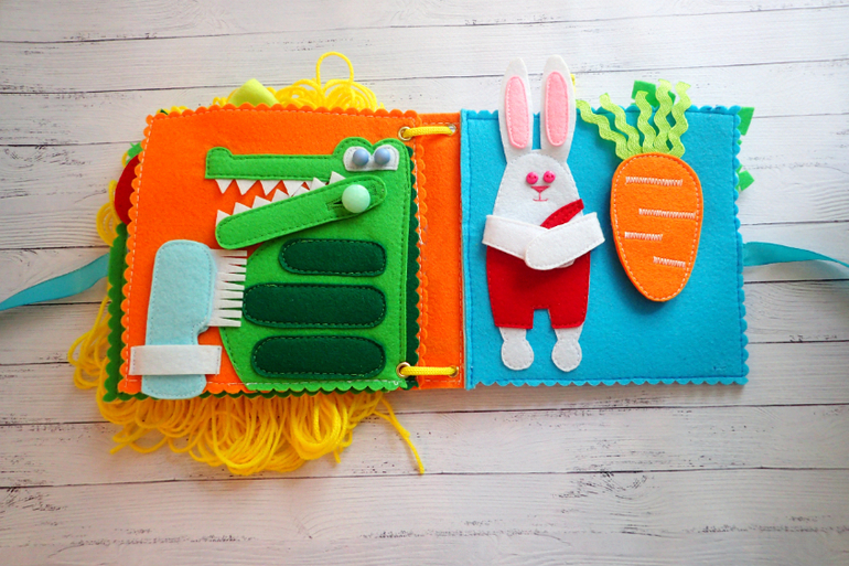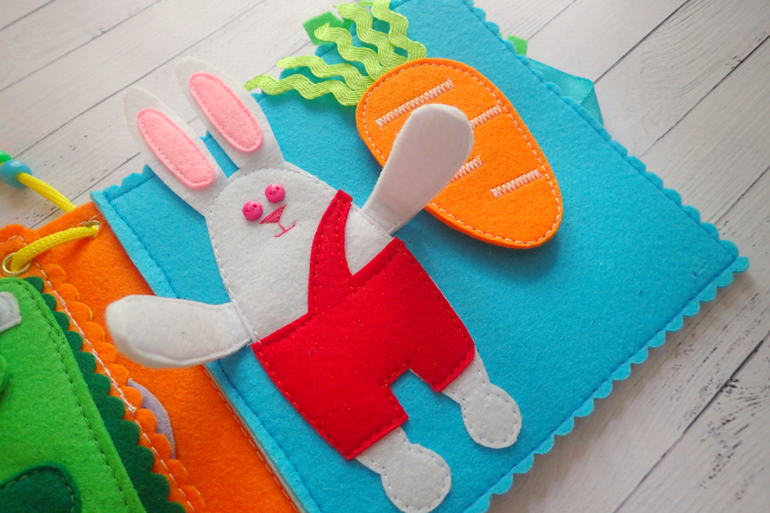 Стр 5 Зайчик. Морковка на пришивной кнопке. Ручки зайки на липучках.