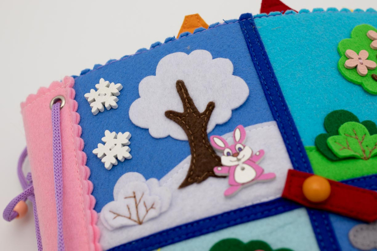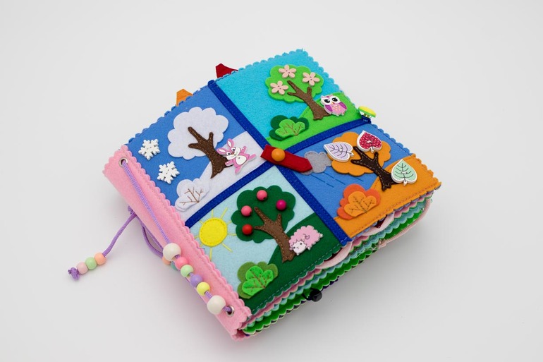 Спешу поделиться фотографиями очередной развивающей книжки из фетра. Назвала ее по обложке : "Времена года".