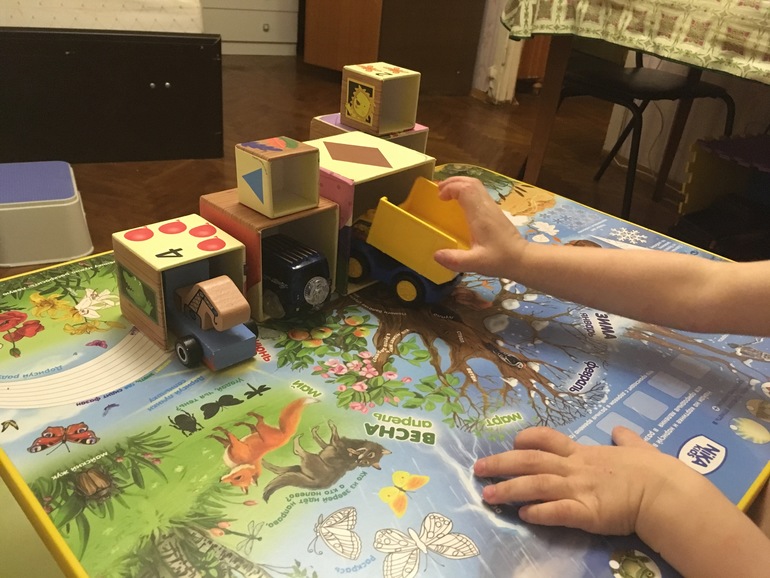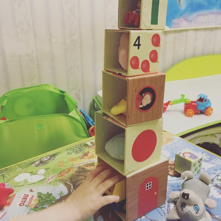 Как мы занимаемся. Делимся опытом.Какие игрушки самые важные для малыша? Что должно быть в арсенале 100%? Для меня одно из основных-это кубики и пирамидка. Мне кажется, они самые многофункциональные. Конечно, если купить кучу классных материалов, дать их ребёнку, то сами по себе они ничего не дадут, надо показать, как можно играть, даже с обычными кубиками, помимо постройки башенки. Я например, сегодня объединила кубики с открытой гранью и игрушки Эмоции, разыграла спектакль) Веня-волчонок живет в домике, у него много комнат «Давай посчитаем, сколько комнат у Вени». В каждой комнатке живет эмоция, когда Вене грустно, он идёт в комнатку с грустью и вместе они печалятся «Как ты грустишь? А как Веня грустит?» Но волчонку не нравится постоянно грустить и он часто заходит в комнату, где живет Радость) «Как Веня радуется, покажи». Подобным образом, мы поиграли со всеми игрушками. Ох, как Мирослав вошёл в процесс) как он старательно показывал каждую эмоцию, как он аккуратно расставлял все Эмоции по своим комнаткам) Кубики можно считать, можно расставлять по размерам, желательно это тоже обыгрывать. У нас, это снова Веня, прыгал по кубикам от большего к меньшему и наоборот. Если на кубиках есть рисунки-отлично! Составляем картинки. И конечно же башенка, но не обычная) Мы построили многоэтажный дом, снова посчитали кубики «этажи», а на первом этаже устроили парковку. А потом построили гаражи. И не просто загоняли туда машинки, а с заданиями «Самосвал большой, он должен заехать в самый большой гараж. А машина скорой помощи должна заехать в самый последний гараж, что бы было удобнее выезжать». Еще я показала, что башенка более устойчива, если начинать ее строить с самого большого кубика, заканчивая маленьким, хотя он это и без меня знал 😂. Мне и самой понравилось играть, дурачится, корчить рожи) Одно из самых сложных, в развитии детей, это достать своего «внутреннего ребёнка» и просто играть, без масок, не стесняясь)