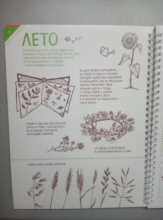 Издание для более старших деток и, наверное, больше для родителей. Тут можно найти много идей как с пользой провести лето. Изучить какие бывают деревья, жуки и травы, дни недели и месяцы. Рассказать ребёнку много интересного о природе. На одном из разворотов есть игра находилка с забавными заданиями. В общем, много фото, т.к. все сразу и не расскажешь.