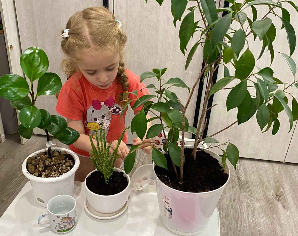 Целых 15 минут у нее уходит в спокойствии и гармонии поливать из шприца, набирая воду из контейнера и приговаривая «Пейте мои хорошенькие»