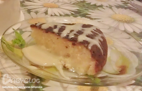 Только что сделала по вашему рецепту, вроди вкусно, хотя я намного по другому представляла) скажите а сверху же у вас корочки нет? На фото запеканка перевернута?