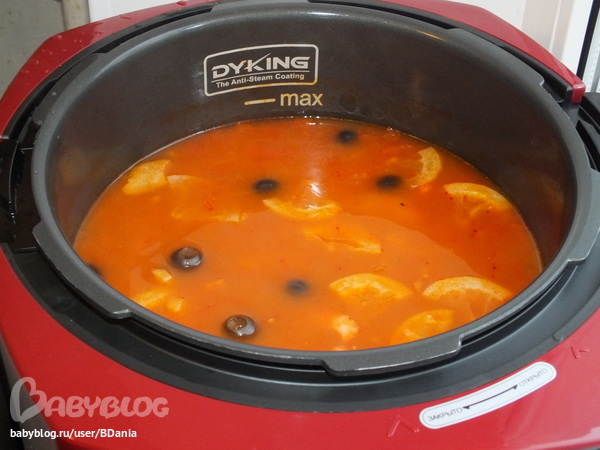 Для меня одним из главных требований к мультиварке было - закинуть все и получить результат. Вобщем порезала - картошку. соленые огурцы, морковь, лук, болгарский перчик, помидор, пару ломтиков лимона, корейку, добавила оливки, молотый перец, томатную пасту и горсть риса. Залила все бульоном, закрыла, поставила под давлением на 50 мин. Ходили с мужем как коты вокруг сметаны. Через пятьдесят минут прозвучала музыка открыли - красота.