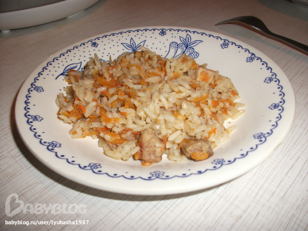 Тоже приготовила плов первый.... но получился не очень рассыпчатый, наверное положила воды лишнего, но вкусный)))