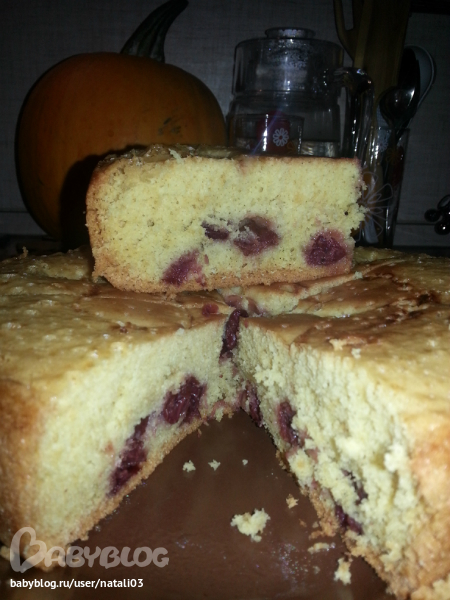 ВыпечкаРецепт очень простой, 3 яйца, стакан сахара, стакан муки, разрыхлитель, ванильный сахар, и свежеразмороженная вишня, позаимствовала тут у АЛИНЫ, за что огромное ей спасибо)))