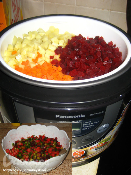 Очень мне понравилось таким способом готовить овощи на винегрет,оливье... Режу кубиком картофель,морковь,свекла