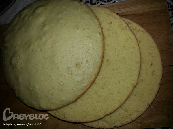 Разрезали ниточкой на 3 коржа)