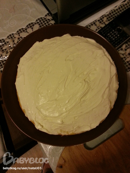 Верхний корж получился толстоватым, можно было его на пополам разрезать, на будующее будем знать)