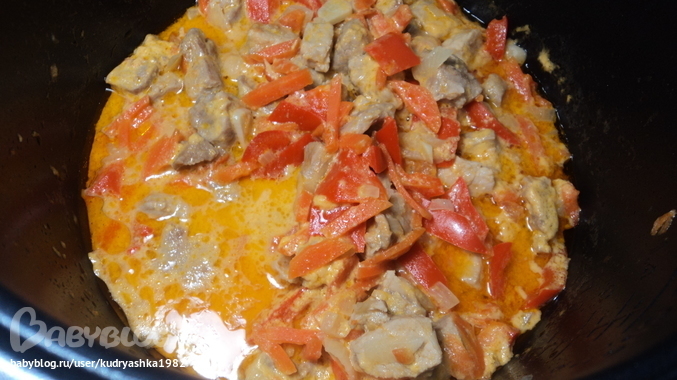 обжарила немного на ЖАРКЕ. Залила сметаной. И поставила на тушение функция-ТУШЕНИЕ....через минут 30-40 выключила, хотя тушение автоматически задано 2 часа...На гарнир были макароны. Очень вкусно.. ПОЛАРИС 0512