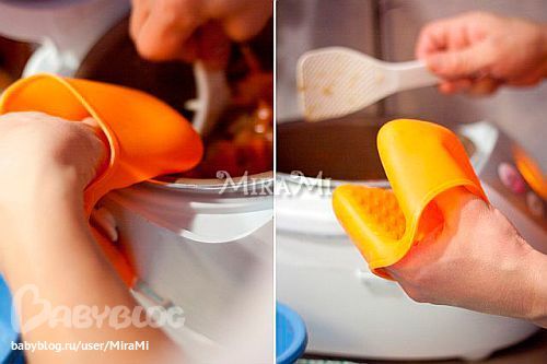Совет 3й: Всегда при перемешивании придерживайте кастрюлю мультиварки силиконовыми перчатками, чтобы она не крутилась – это позволит продлить её срок службы (объяснить не могу – вычитала на одном мультиварочном форуме).
