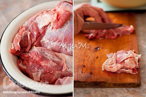 1 Баранина без костей 700 г – порезать небольшими кубиками (примерно 2х2 см); *
