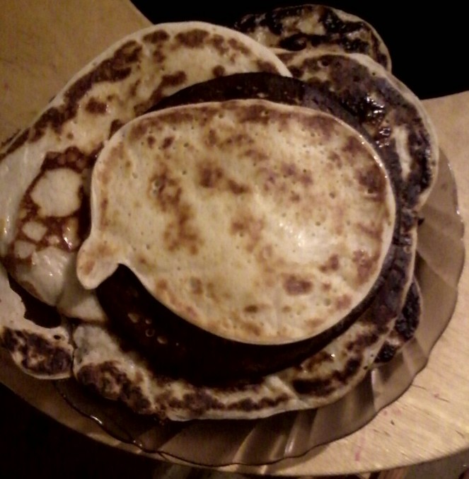 Вы конечно, молодец;) но зачем так мучаться? Блины в мульте это реально неудобно, даже с двумя лопаточками))