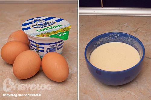 Яйца разбиваем (или это не обязательно писать?), добавляем сметану и горчицу , взбиваем вилочкой: