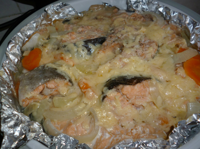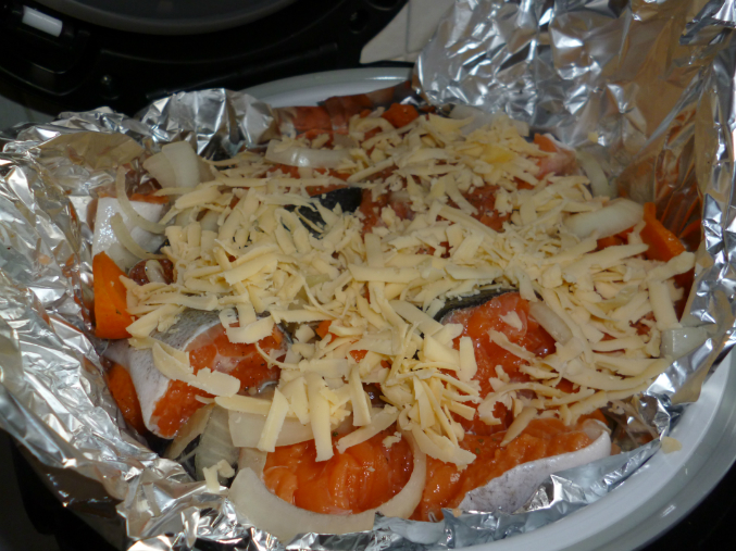 Блюда из рыбыМультиварка Поларис 0517. Готовила сегодня форель на пару под сыром и отварную картошечку. Картошку почистила, залила водой, посолила. Форель порезала на кусочки, положила на фольгу в чашу для готовки на пару, посолила, поперчила, добавила лук и морковь, сверху посыпала сыром. Режим "Варка на пару", 25 минут.