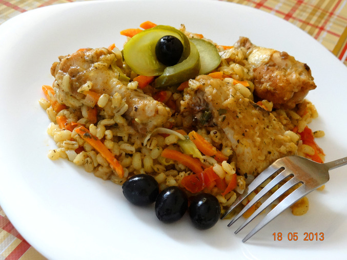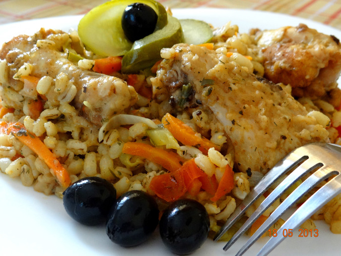 Блюда из круп, кашиАромат стоял потрясающий !!! ))) Вкусная, рассыпчатая перловка с пикантным вкусом и сытный ужин !!! )))