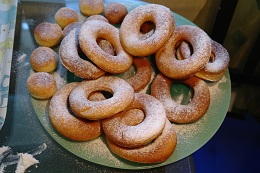 Раскатайте тесто скалкой. Далее Вам понадобятся 2 стакана разного диаметра: один побольше, другой поменьше. Делаем с помощью них кружок -в кружке.