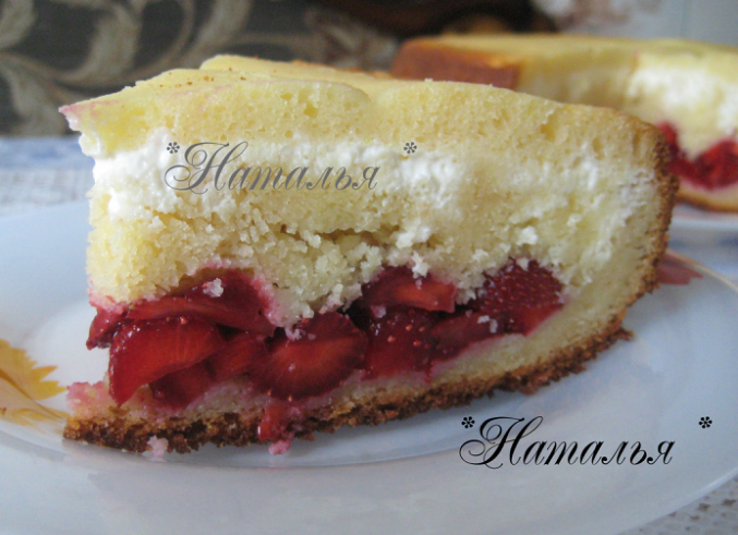 Фишка в том, что в середине пирога находится свежая клубника. А как она туда попала знаем только мы!