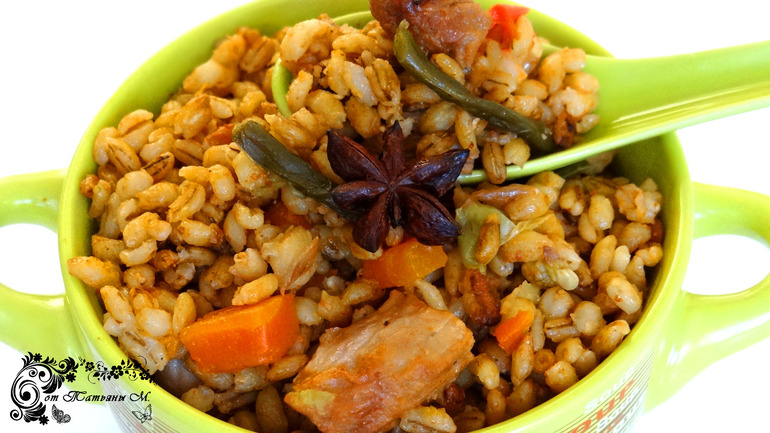 Перловая каша с мясом, томленная в томатном соке с бадьяном