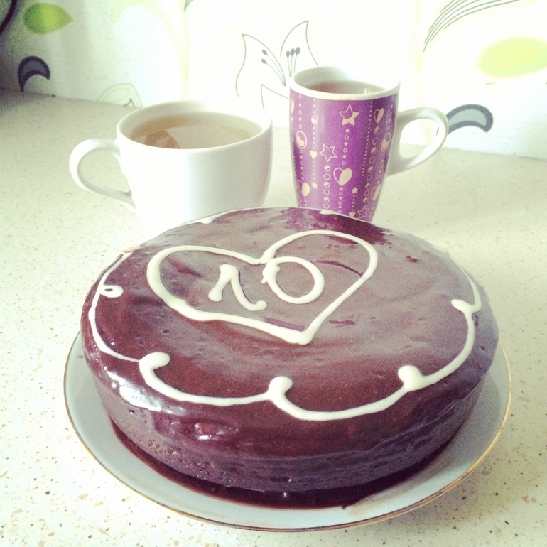 Для глазури смешать в кастрюле сметану, масло, какао и сахар. Немного подогреть(не кипятить) до полного растворения сахара. Смазать сверху торт.
