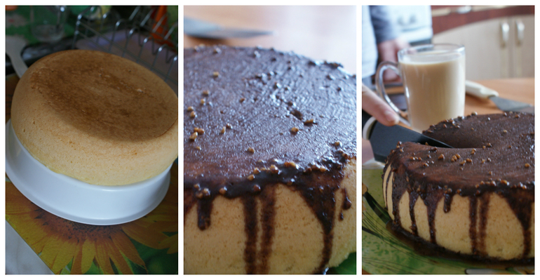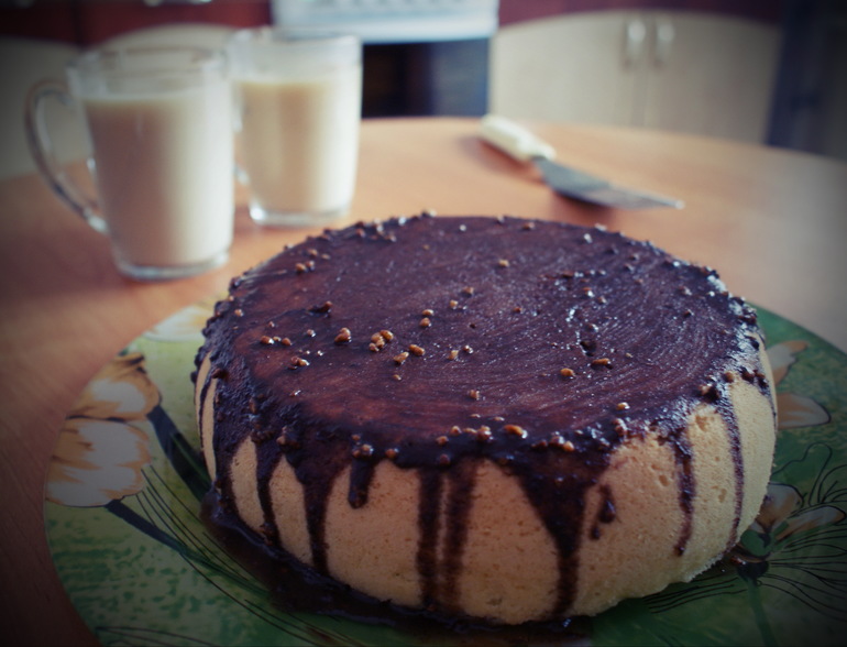Сразу после выпечки вынуть бисквит из формы и дать ему остыть. Такой бисквит вкусен с молоком, чаем, кофе. Можно также его разрезать на коржи и прослоить любимым кремом.