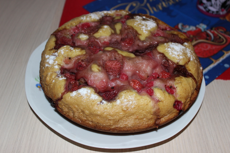 Выпекаем ягодный пирог в мультиварке в режиме "выпечка" 50 минут. При желании можно присыпать с ягодами - сахаром или сахарной пудрой.