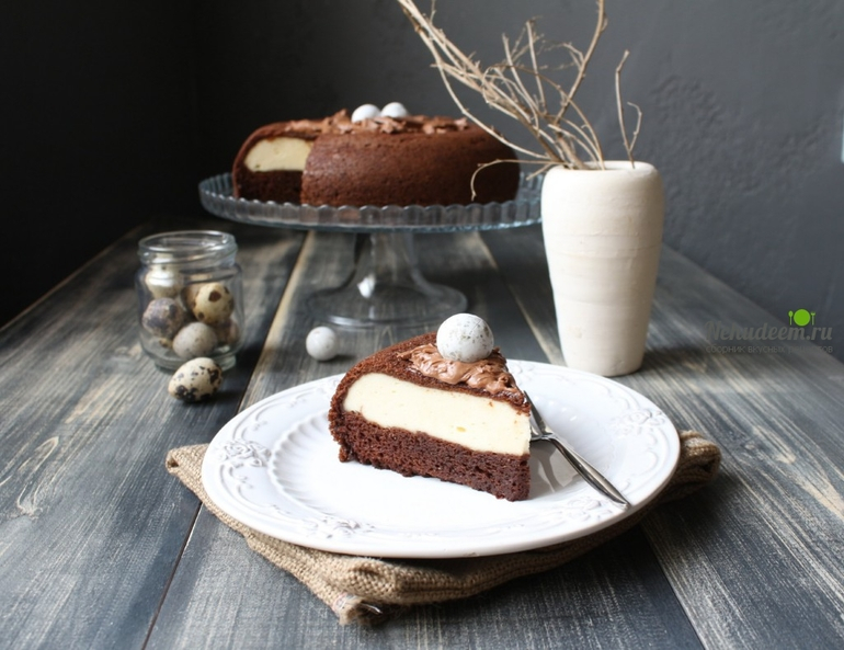 Юль, там по ссылке рецептик и пошагово написано. Просто сначала делаете шоколадное тесто и выкладываете его в мультиварку, потом делаете творожное тесто и аккуратно выкладываете его в центр шоколадного. Ну и потом в процессе выпечки шоколадное как-бы окутывает творожное)