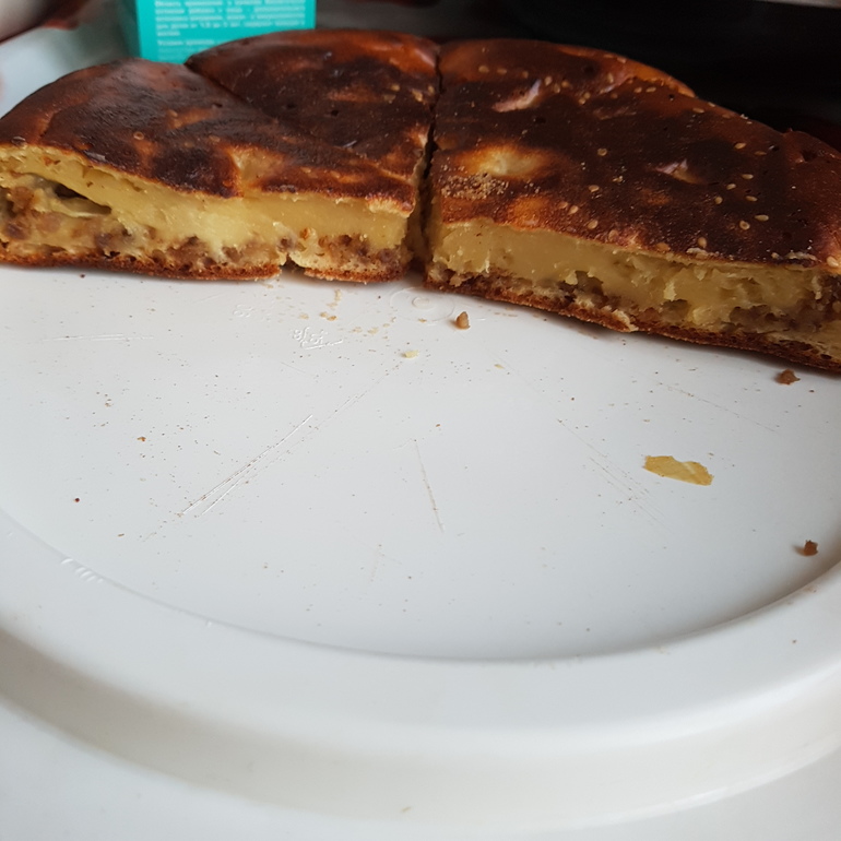 ВыпечкаДевочки, где я допустила ошибку. Я делала по такому рецепту: 2 стакана муки, 500мл кефира и 2 яйца, сода, соль, сахар и обжаренный фарш с луком. Залила часть теста (как сметана) чашу, выложила начинку и снова залила. Поставила на 50 мин, но он не пропекся, я еще мин 20 выпекала, перевернув его. Но тесто все равно не много не пропеклось, а сверху корка уже конкретная. Я так понимаю теста много получилось. Мультиварка у меня рэдмонд. Вот к примеру шарлотка получается изумительная за 40 мин
