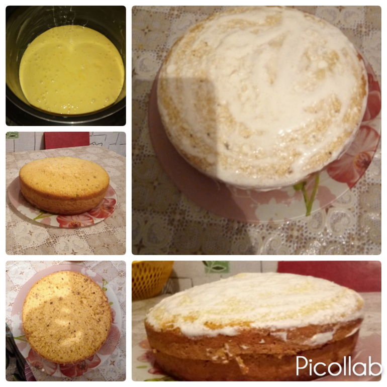 только у меня 5 яиц не было, а было 3 всего, но получилось очень вкусно. Разрезала и про мазала сметаной с сахаром, в тесто добавила грецкие орехи. Я пока только учусь))