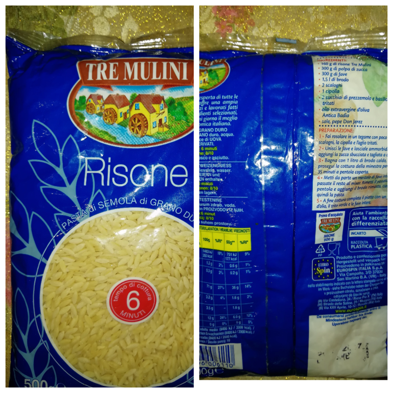 Это не рис, а орзо - макароны из твердой пшеницы в форме риса..очень вкусно отварить и добавить любую заправку (обжаренное филе, грибы, лучок, сливки или что душе угодно будет)