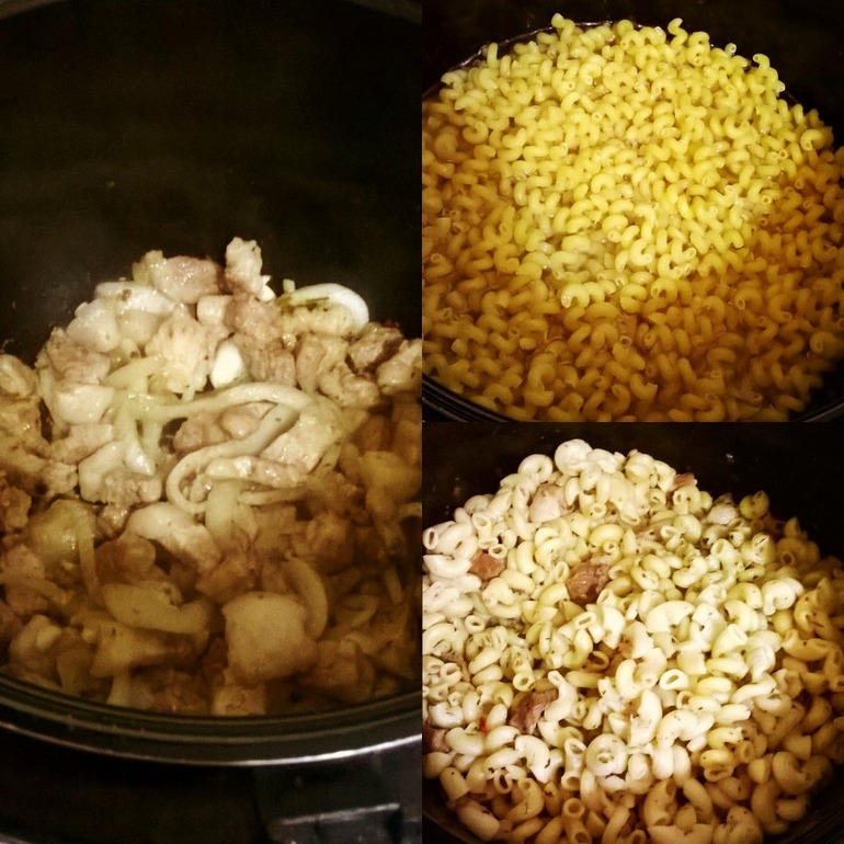 Выкладываю макароны и заливаю водой, чтобы она еле их закрывала. Готовлю до окончания программы.