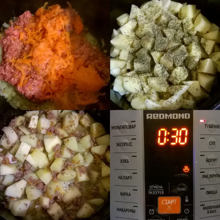 🏻Включаем программу "Тушение" 30 минут. Если картофель меньше чем полчаши, будет достаточно 20-25 минут.