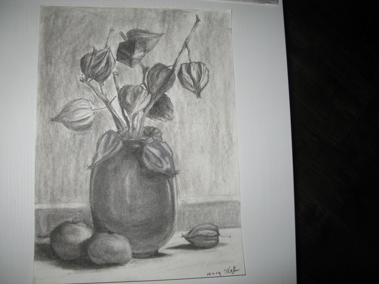 НатюрмортПока оставила масло в стороне и решила начать все же с рисунка, решила найти педагога. И нашла, хожу раз в неделю, отрываюсь)))) После каждого занятия, делаю дома самостоятельные работы.
