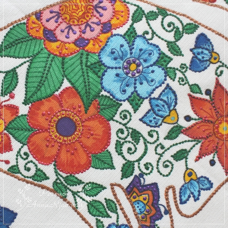 Роспись по тканеРасписала ткань маркерами для ткани и акриловыми контурами точечки сделала. Кошечка цветочная, совсем уже весенне-летняя, надеюсь скоро уже везде будут цветочки-листочки.