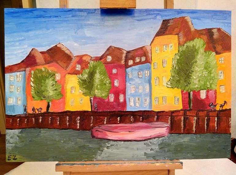 ЖивописьНа улице сыро, в Киеве осень.... А в моем Копенгагене голубое небо ☺️ Масло, холст 60 на 40