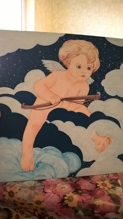 Пытаюсь рисовать. Плоские облака мне не понравились. Изначально я их так и хотела изобразить, а теперь пытаюсь исправить. Акрил.