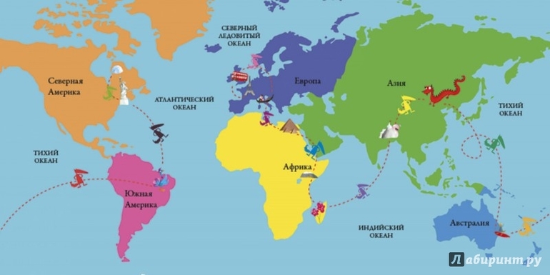 Хотим общий вид в качестве контурной карты на стене и на этой карте нарисованы какие интересные элементы (например в океане акула, в море корабль, в Африке лев, в Москве Красная площадь, .... и т.д, )