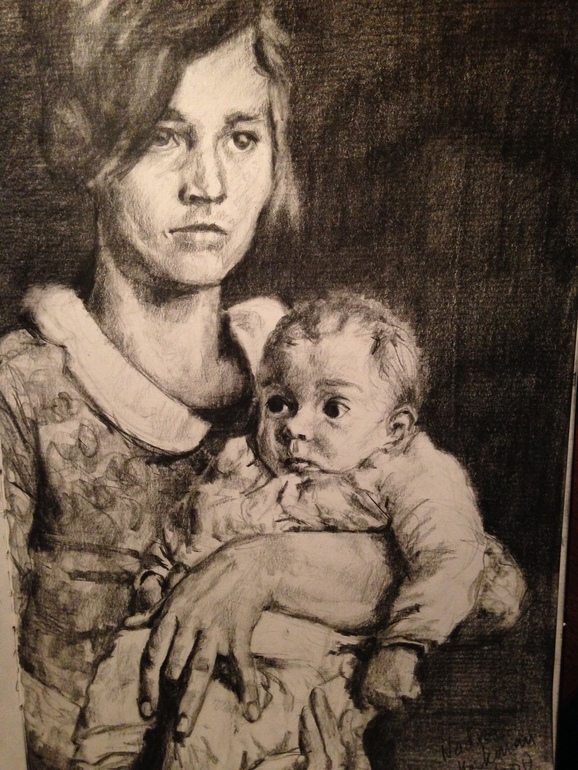 Шея у женщины слишком длинная и тонкая. Пальцы - надо поработать. Лицо малыша, нос крупноват.