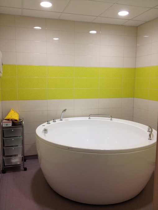 Когда входишь с правой стороны душь с туалетом, стоит спец. стульчик, для того когда снимают боль напором душа на поясницу, с правой стороны отдельная комната с джакузи,идем прямо, дальше справа кровать, ктг, прямо - все приспособления для родов, слева - стол на котором моют, измеряют, переодевают малыша, сверху спец. лампа которая согревает малыша в это время. Цивилизация!!
