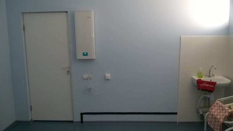 Раковина , чтобы подмыть малыша. И аппарат для обеззараживания воздуха (на стене), работал круглосуточно.